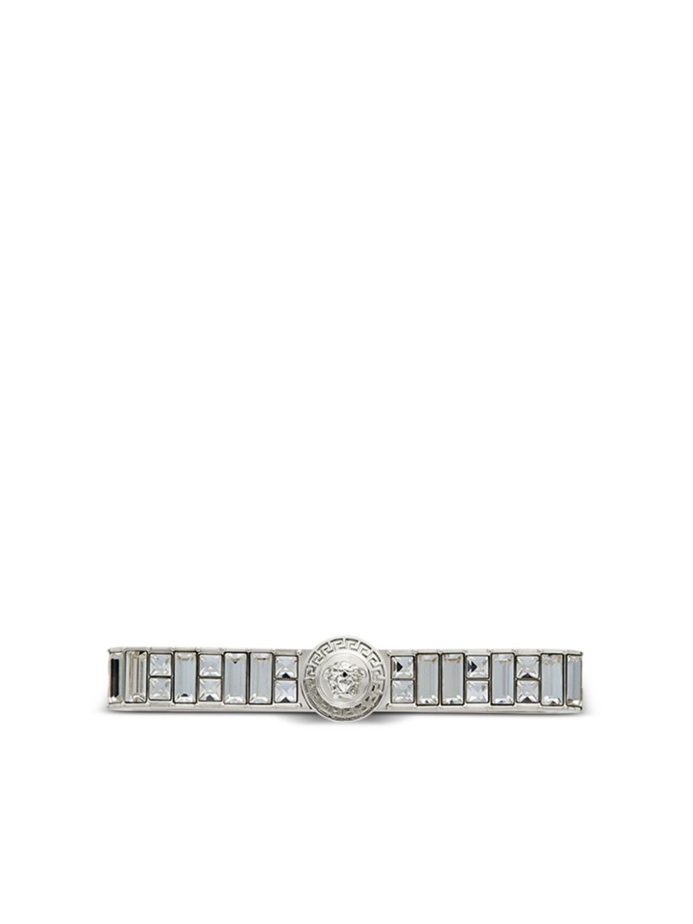 Gianni Ribbon crystal cuff ring Highlights - Silver-tone - Polished finish - Two-finger design - Bow motif - Crystal embellishment - Medusa head motif - Signature debossed greca detailing Made in Italy