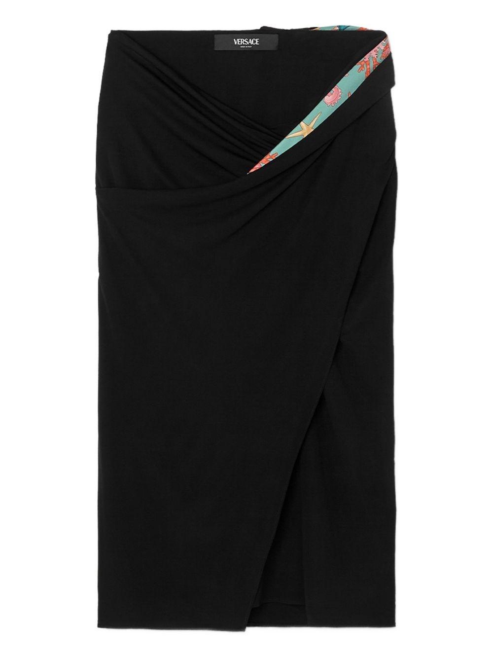 Underwater Barocco draped midi skirt Highlights - Black - Side slit - Underwater barocco print - Wrap design - Gathered detailing Made in Italy Composition Outer: Polyester 100%, Viscose 95%, Elastane 5% Lining: Viscose 95%, Elastane 5%