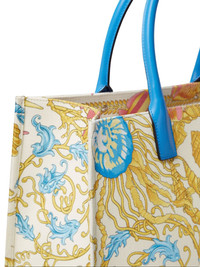 Underwater Barocco-pattern tote bag Highlights - White - Underwater barocco design - Concealed press-stud fastening - Logo lettering - Top handles - Signature embellishment Made in Italy Composition Outer: Cotton 100%, Calf Leather 100% Lining: Cotton 100% SIZE & FIT Measurement DEPTH 6.29 in(16 cm) HANDLE 6.29 in(16 cm) HEIGHT 11.81 in(30 cm) WIDTH 15.74 in(40 cm)