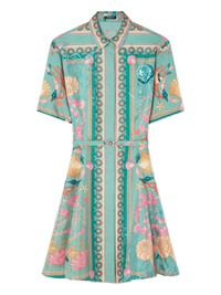 Underwater Barocco silk mini shirt dress Highlights - Sea green - Concealed front button fastening - Underwater barocco print - Detachable and adjustable waist belt - Classic collar - Short sleeves Imported Composition Silk 100%