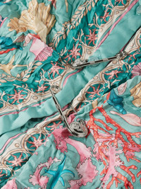 Safety Pin Underwater Barocco draped shirt Highlights - Turquoise - Underwater barocco print - Signature medusa safety pin detail - Draped detailing - Long sleeves - Contrasting trim - Relaxed collar Imported Composition Outer: Polyester 100% Lining: Acetate 75%, Silk 25%