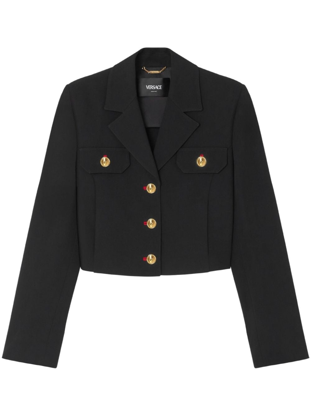 Uniform cropped jacket Highlights - Black - Virgin wool - Cropped - Front button fastening - Notched lapels - Signature medusa head buttons - Long sleeves - Buttoned cuffs - Two chest flap pockets - Partial lining - Straight hem Made In Italy Composition Lining: Cupro 100% Outer: Virgin Wool 100%