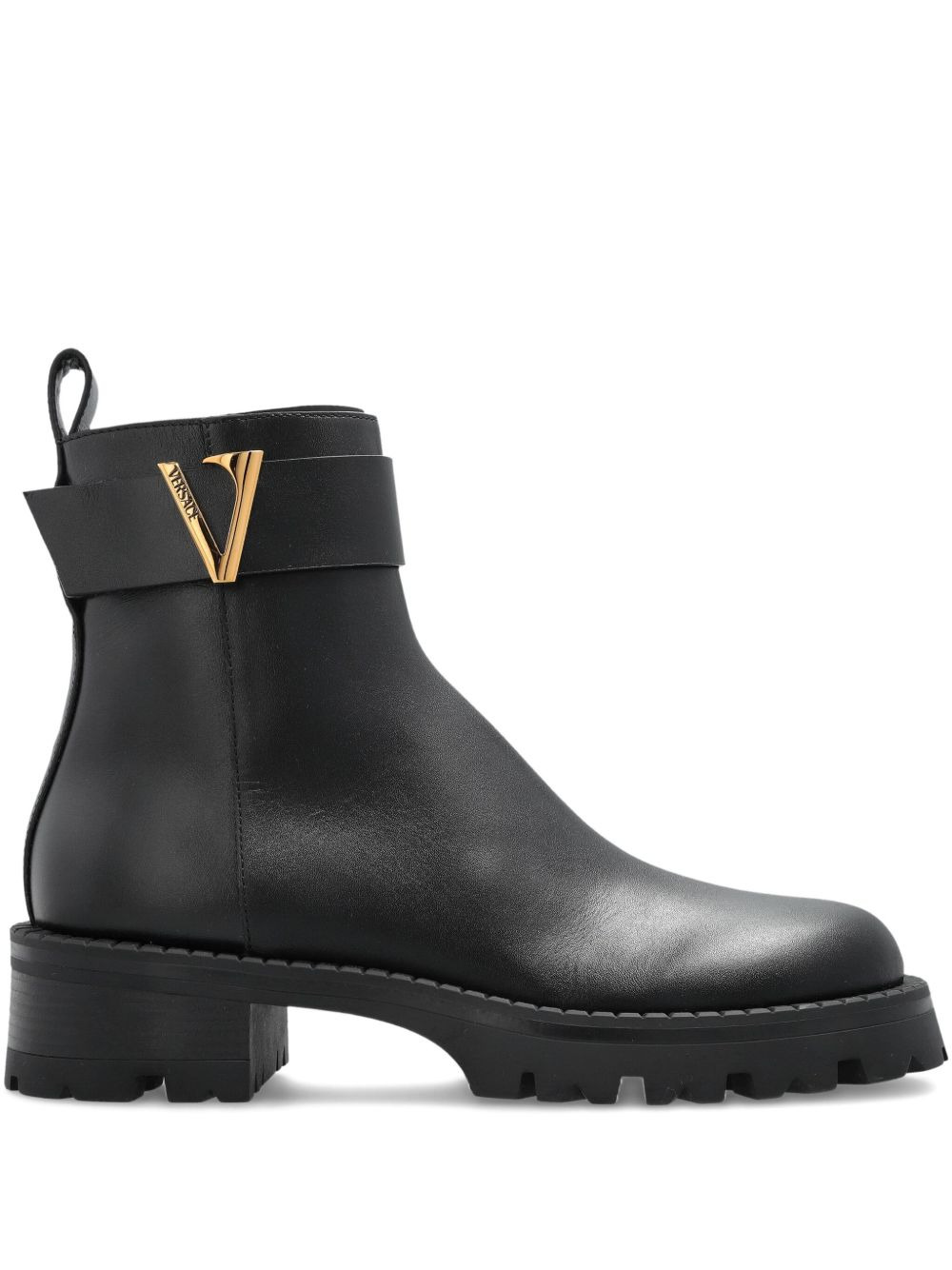 V-Ankle buckle-detail boots Highlights - Black - Calf leather - Side zip fastening - Buckle detail - Rubber sole - Block heel Made in Italy Composition Outer: Calf Leather 100% Lining: Calf Leather 100% Sole: Rubber 100%