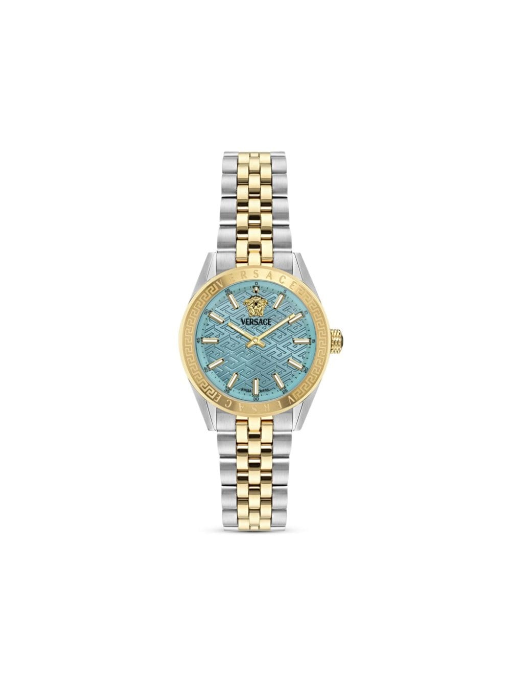 V-Code Lady 36mm Highlights - 36mm - Stainless steel - Quartz movement - Baton dial - Baton hands - Signature greca detailing - Medusa head motif - Round face - Screw-down crown - Engraved bezel - Stainless steel link bracelet - Clasp fastening - This item comes with a standard one-year warranty from the brand. Imported
