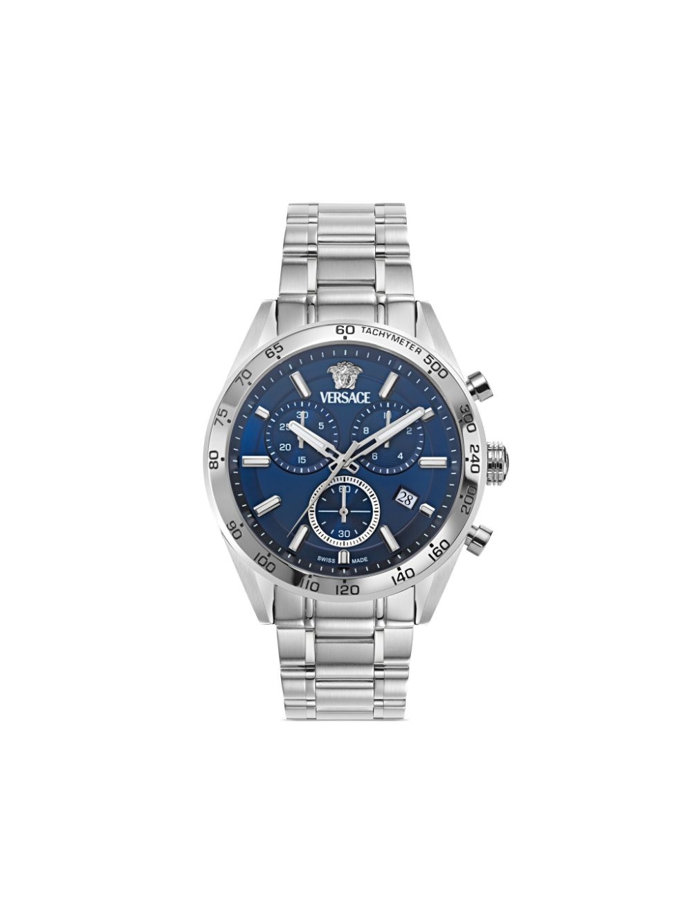 V-Code Chronograph 41mm Highlights - 41mm - Blue - Stainless steel - Index dial - Stick hands - Three chronograph sub-dials - Date indication - Round face - Fixed tachymeter bezel - Push-down crown - Two chronograph pushers - Stainless steel link bracelet - Folding clasp - Automatic movement - Your purchase will arrive to you in its original packaging. Imported Composition stainless steel 100%, Sapphire Crystal 100%