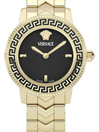 V-Icon 30mm Highlights - Black - Stainless steel - Quartz movement - Round face - Index dial - Sword hands - Stainless steel case - Sapphire crystal - Screw-down crown - Signature greca detailing - Stainless steel link bracelet - Quick-release buckle fastening - This item comes with a standard one-year warranty from the boutique. Imported SIZE & FIT Measurement DIAMETER 1.18 in(3 cm) Thickness 0.11 in(0.3 cm) WIDTH 0.55 in(1.4 cm)