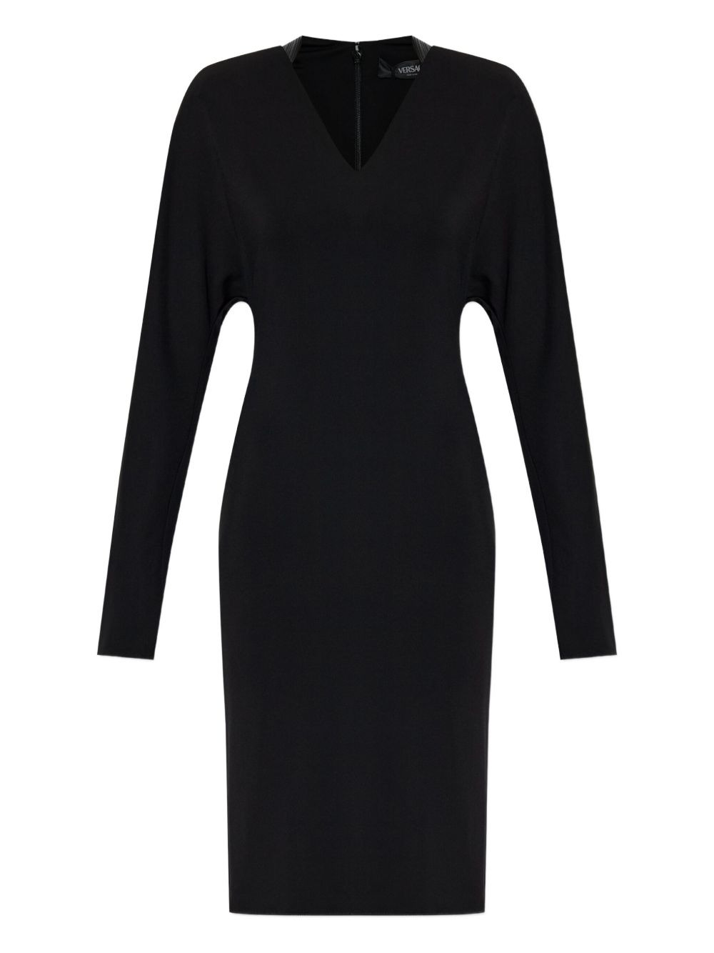 V-neck long-sleeve mini dress Highlights - Black - V-neck - Long sleeves - Branded button Made in Italy Composition Viscose 95%, Elastane 5% Washing instructions Read Manufacturer Guidelines