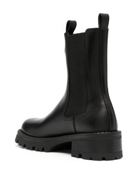 Alia leather Chelsea boots Versace's reinterpretation of the Chelsea boot style includes the renowned Medusa Head motif. Placed on the front in a refined gold-tone, the branded plaque contrasts the pair's black leather construction and classic ridged sole. Highlights - Black - Calf leather - Medusa plaque detail - Elasticated side panels - Double pull-tab at the opening - Branded insole - Low ridged heel - Ridged rubber sole Made in Italy Composition Leather 100% SIZE & FIT Measurement HEEL 1.96 in(5 cm) HEIGHT 7.48 in(19 cm) Sole height 0.98 in(2.5 cm)