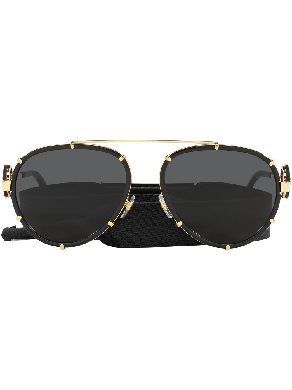 VE 2232 pilot sunglasses black pilot frame tinted lenses logo plaque at the arm nose pads These glasses come with a protective case. Made in Italy Composition Metal 100% SIZE & FIT Measurement Arm Length 5.7 in(14.5 cm) Bridge Width 0.7 in(1.8 cm) Lens Diameter 2.4 in(6.1 cm)