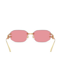 VE2274 sunglasses Highlights - Gold-tone - Metal - Frameless design - Logo-engraved arm - Nose pads - Pink tinted lenses Made in United States Composition Metal 100% SIZE & FIT Measurement Bridge Width 0.51 in(1.3 cm) Lens Diameter 2.28 in(5.8 cm)