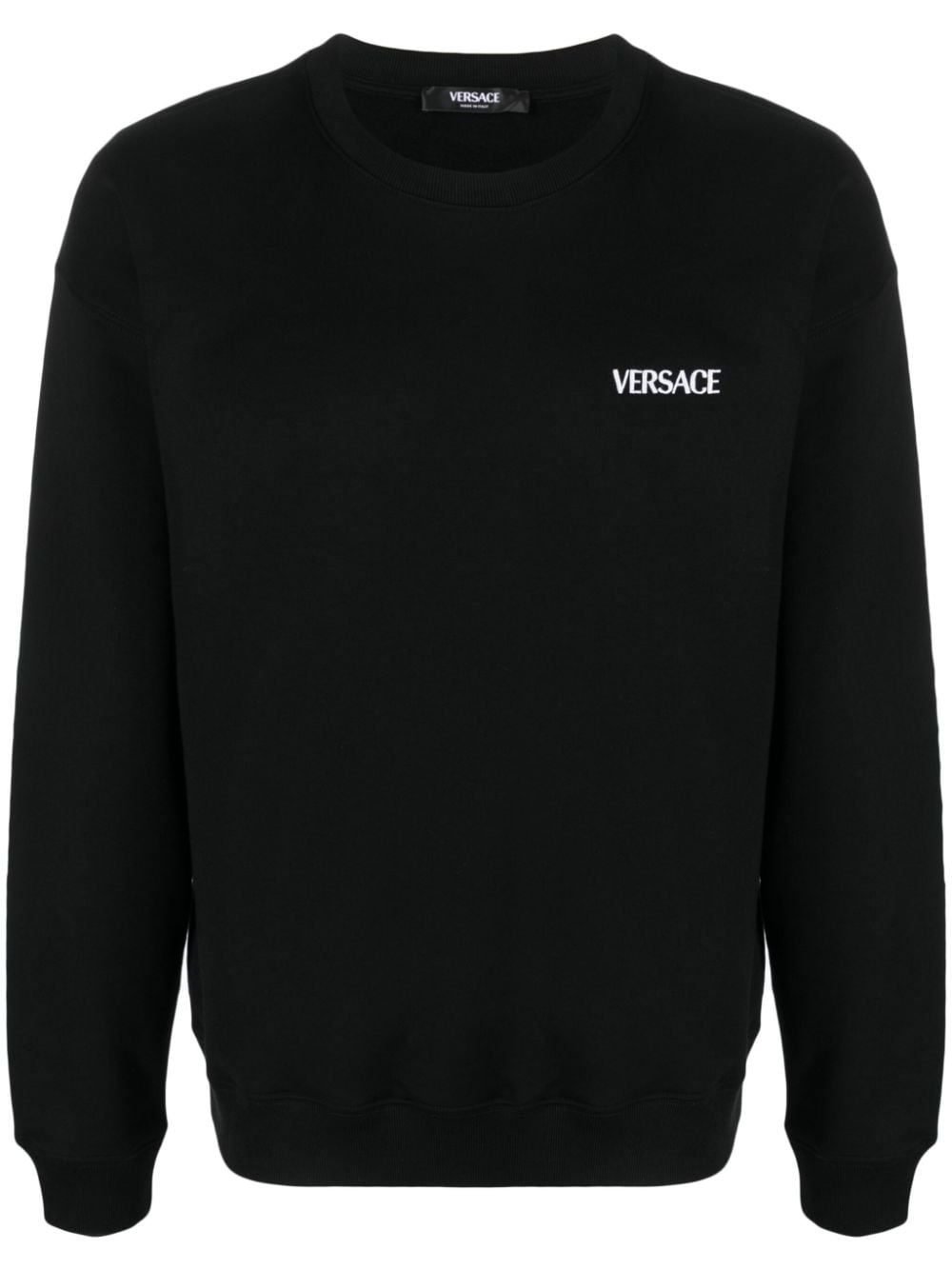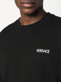 Versace Hills cotton sweatshirt Made from cotton jersey with a soft fleece lining, this Versace sweatshirt is adorned with a seasonal Versace Hills print at the rear in pink and white tones. Highlights - Black/multicolour - Cotton - Crew neck - Logo print at the chest - Long sleeves - Graphic print to the rear - Ribbed edge Made in Italy Composition Cotton 100% SIZE & FIT Model measurements Height 6 ft 2 in(1.89 m) Bust/Chest 39.76 in(101 cm) Hips 37.4 in(95 cm) Waist 29.92 in(76 cm) FittingInformation Designed for a relaxed fit, this piece allows for comfort and movement when worn The ribbed hem offers a close, comfortable fit Made from a midweight non-stretch fabric, this piece offers minimal elasticity when worn This piece fits true to size – take your usual size Washing instructions Machine Wash