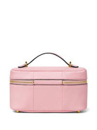 Tag vanity bag Highlights - Bubblegum pink - Top zip fastening - Magnetic fastening - Single flat top handle - Adjustable detachable shoulder strap Made in Italy Composition Outer: Lamb Skin 100% Lining: Polyester 100% SIZE & FIT Measurement DEPTH 3.14 in(8 cm) HANDLE 1.57 in(4 cm) HEIGHT 4.72 in(12 cm) STRAP 41.33 in(105 cm) WIDTH 8.66 in(22 cm)