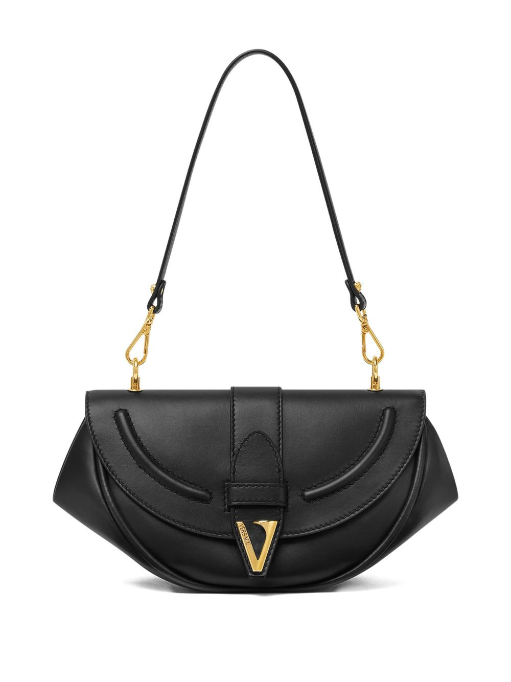 medium Virtus shoulder bag Highlights - Black - Foldover top with magnetic fastening - Detachable shoulder strap Made in Italy Composition Outer: Calf Leather 100% Lining: Cotton 100% SIZE & FIT Measurement DEPTH 4.52 in(11.5 cm) HEIGHT 7.08 in(18 cm) WIDTH 13.77 in(35 cm)