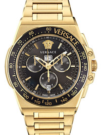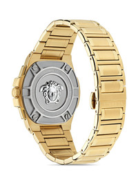 Greca Chrono 45mm Highlights - 45mm - Aluminium - Quartz movement - Index hands - Round face - Logo-engraved bezel - Gold-tone - Medusa head motif - Chain bracelet - Clasp fastening - Chronograph counters - Water resistance up to 50m/5 atm Imported Composition Aluminium 100% SIZE & FIT Measurement DIAMETER 1.77 in(4.5 cm)