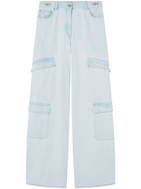 wide-leg cargo jeans Highlights - Light blue - Cotton - Denim - Light wash - Medusa plaque detail - Belt loops - Logo patch to the rear - Concealed fly and button fastening - Classic five pockets - Two side flap pockets - Two side patch pockets Made in Italy Composition Outer: Cotton 100%, Calf Leather 100% Lining: Polyester 65%, Cotton 35%