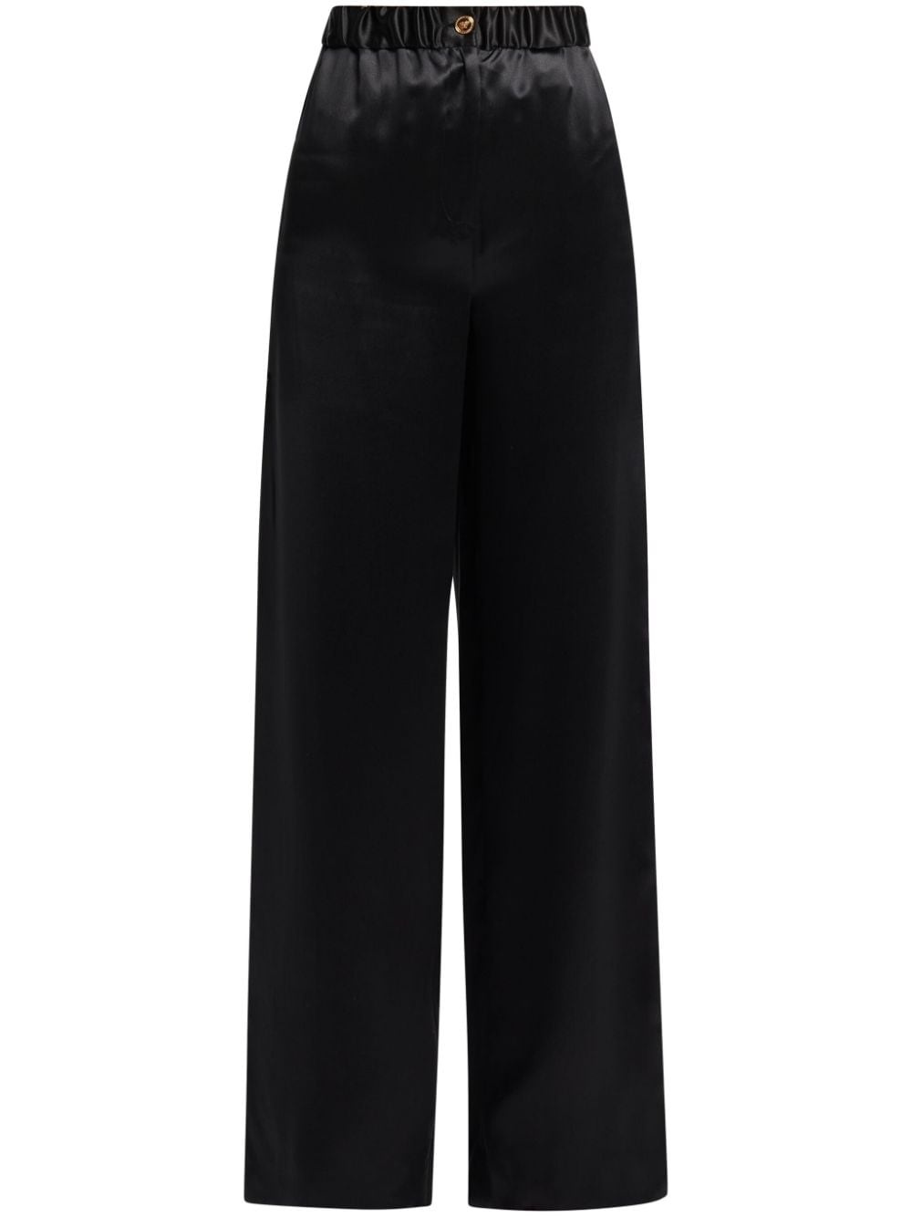 wide-leg silk trousers Highlights - Black - Silk - Satin weave - Medusa head motif - Elasticated waistband - Wide leg Made in Italy Composition Silk 100% Washing instructions Read Manufacturer Guidelines