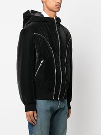 zip-detail puffer jacket Crafted from nylon with an opaque finish, this puffer jacket references Versace's signature Repeat bag through the curved zips that adorn the front and sleeves. A tonal Barocco Silhouette lining and zipped hood complete the all-black design. Highlights - Black - Padded design - Classic hood - Decorative zip detailing - Front zip fastening - Two diagonal pockets to the sides - Long sleeves - Contrast lining - Ribbed edge Made in Italy Composition Outer: Calf Leather 100%, Polyamide 100% Lining: Polyester 100%, Cotton 100% SIZE & FIT Model measurements Height 6 ft 2 in(1.87 m) Bust/Chest 38.18 in(97 cm) Hips 36.61 in(93 cm) Waist 29.13 in(74 cm) FittingInformation Designed for a relaxed fit, this piece allows for comfort and movement when worn The ribbed hem offers a close, comfortable fit Made from a padded non-stretch fabric, giving it no natural elasticity This piece fits true to size – take your usual size Washing instructions Machine Wash