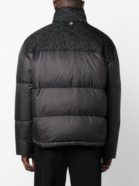 zip-fastening padded jacket Versace takes a functional approach to design with this jacket from the SS23 collection. Featuring a front zip fastening and a fully padded construction, the outerwear garment has a utilitarian feel. Made in Italy Composition Lining: Feather Down 100%, Cotton 100%, Polyamide 100%, Polyester 100% Outer: Polyamide 100% SIZE & FIT Model measurements Height 6 ft 0 in(1.84 m) Bust/Chest 35.82 in(91 cm) Hips 37 in(94 cm) Waist 28.34 in(72 cm) FittingInformation This piece fits true to size. We recommend you get your regular size Cut for a loose fit Made with a mid-weight non-stretch fabric Washing instructions Machine Wash
