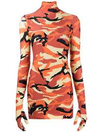 camouflage-print minidress Decorated with a classic camouflage print throughout, this mini dress from Vetements follows the brand's self-referential and playful aesthetic whilst boasting glove-style sleeves for a sophisticated touch. Made in Italy Composition Outer: Polyamide 80%, Spandex/Elastane 20% Lining: Polyamide 82%, Spandex/Elastane 18% SIZE & FIT Model measurements Height 5 ft 11 in(1.8 m) Bust/Chest 33.07 in(84 cm) Hips 37.4 in(95 cm) Waist 25.19 in(64 cm) FittingInformation This piece fits true to size. We recommend you get your regular size Cut for a close fit Made with a mid-weight stretch fabric Washing instructions Machine Wash