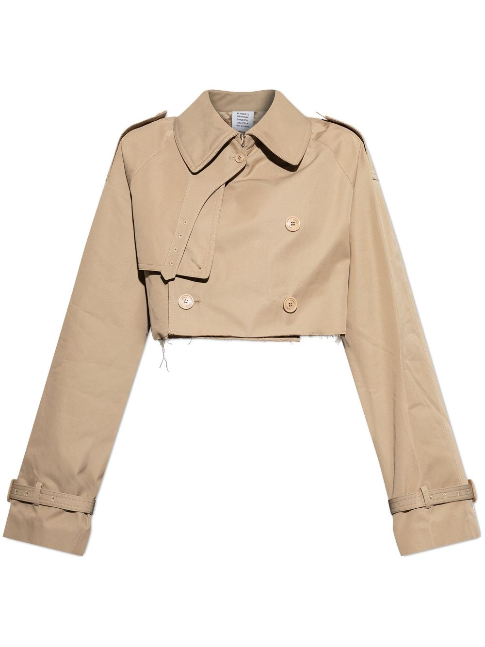 cropped trench jacket Highlights - Light beige - Double-breasted button fastening - Belted cuffs - Epaulettes - Storm flap Made in Italy Composition Cotton 100%