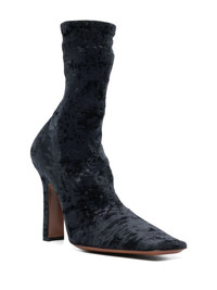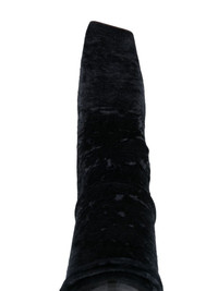 crushed velvet sock boots black calf leather crushed velvet ankle-length sock-style ankle square toe pull-on style high tapered heel heel: 12cm Made in Italy Composition Outer: Polyamide 100% Lining: Calf Leather 100%, Fabric 100% Sole: Calf Leather 100% SIZE & FIT Measurement CIRCUMFERENCE 7.87 in(20 cm) HEEL 4.72 in(12 cm) HEIGHT 7.08 in(18 cm)