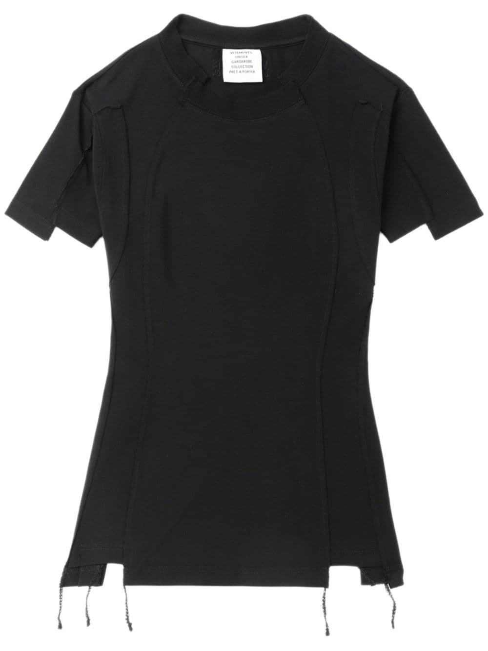 cut-off strap T-shirt Highlights - Black - Stretch-cotton - Stretch-design - Cut-off detailing - Short sleeves - Cutout neck - Cutout sleeves - Cutout hem Imported Composition Cotton 93%, Elastane 7%