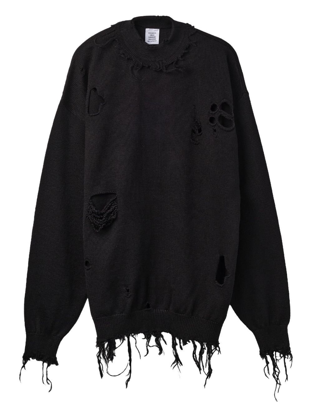 Destroyed sweater Highlights - Black - Crew neck - Long sleeves - Ribbed cuffs and hem - Ripped detailing - Distressed effect - When buying this unisex item, keep in mind that it is graded in standard men's sizing. Imported Composition Fabric 100%