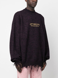 distressed logo-print sweatshirt black dark purple merino wool distressed effect logo print at the chest crew neck long sleeves frayed hem Made in Italy Composition Merino 100% SIZE & FIT Model measurements Height 6 ft 2 in(1.87 m) Bust/Chest 36.41 in(92.5 cm) Hips 37 in(94 cm) Waist 29.52 in(75 cm) Washing instructions Hand Wash