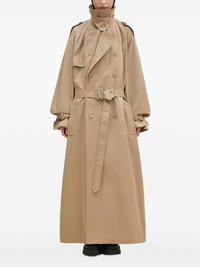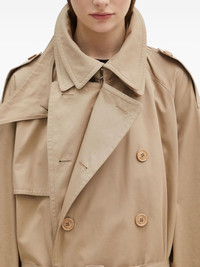 double-breasted belted trench coat Highlights - Beige - Double-breasted closure - Belted waist - Long sleeves - Belted cuffs - Epaulettes Imported Composition Outer: Cotton 100% Lining: Viscose 100% Washing instructions Read Manufacturer Guidelines