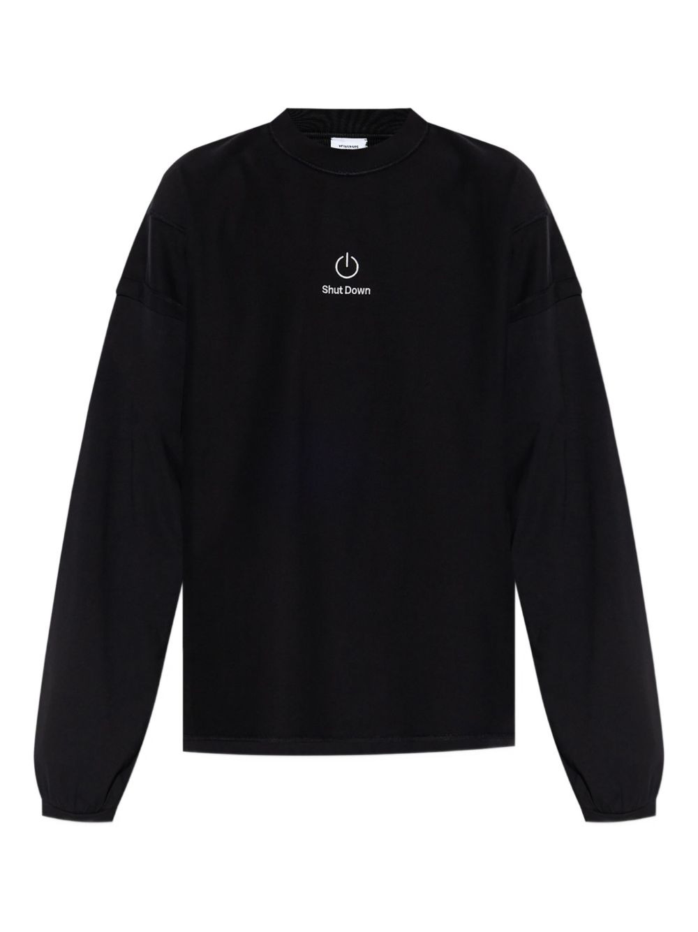 embroidered cotton T-shirt Highlights - Black - Power symbol embroidery - Shut down embroidery - Mock neck - Long sleeves Imported Composition Cotton 100% Washing instructions Read Manufacturer Guidelines