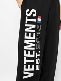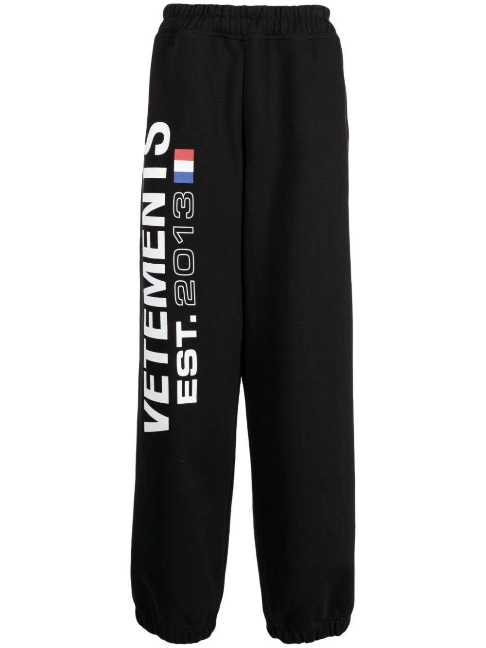 Flag-logo print track pants Highlights - Black - Cotton blend - Logo print at the leg - Elasticated waistband - Two side slit pockets - Rear patch pocket - Elasticated cuffs Imported Composition Cotton 80%, Polyester 20% SIZE & FIT Model measurements Height 6 ft 2 in(1.87 m) Bust/Chest 34.25 in(87 cm) Hips 36.22 in(92 cm) Waist 29.52 in(75 cm) FittingInformation Designed for a relaxed straight leg, allowing a comfortable and loose fit over the leg The elasticated waist allows for a comfortable fit Made from a heavyweight non-stretch fabric, this piece offers minimal elasticity when worn This piece fits large – take one size down Washing instructions Machine Wash