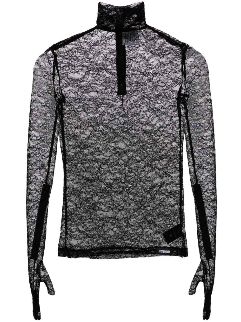 floral-lace glove-sleeve top Highlights - Black - Stretch-jersey - Floral-lace detailing - High neck - Long sleeves - Glove sleeves - Straight hem Made in Italy Composition Outer: Polyamide 85%, Elastane 15% Lining: Polyamide 82%, Elastane 18% SIZE & FIT Model measurements Height 5 ft 10 in(1.77 m) Bust/Chest 31.49 in(80 cm) Hips 35.43 in(90 cm) Waist 25.19 in(64 cm) FittingInformation Designed for a very close and sculpting fit Constructed with a narrow neckline Made from a lightweight stretch fabric, this piece offers elasticity and flexibility when worn This piece fits true to size – those with broad shoulders may wish to take one size up Washing instructions Hand Wash