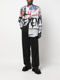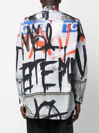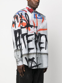 graffiti-print shirt Highlights - Multicolour - Cotton - Graffiti print - Pointed flat collar - Front button fastening - Long sleeves - Buttoned cuffs - Curved hem - When buying this unisex item, keep in mind that it is graded in standard men's sizing. Made in Italy Composition Cotton 100% SIZE & FIT Model measurements Height 6 ft 0 in(1.84 m) Bust/Chest 35.82 in(91 cm) Hips 37 in(94 cm) Waist 28.34 in(72 cm) Measurement CHEST 58.26 in(148 cm) SLEEVE LENGTH 37 in(94 cm) Shoulder Width 22.04 in(56 cm) FittingInformation This piece is unisex – if you usually select men's sizing expect a loose fit throughout; if you usually select women's sizes, expect an oversized fit Made from a midweight non-stretch fabric Washing instructions Machine Wash