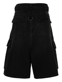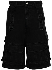 high-rise denim cargo shorts Highlights - Black - Cotton - Washed denim - D-ring straps to the front and rear - High-rise - Belt loops - Concealed fly and button fastening - Two diagonal pockets to the sides - Multiple cargo pockets - Two rear flap pockets - Wide leg - Knee-length - When buying this unisex item, keep in mind that it is graded in standard men's sizing. Made in Italy Composition Cotton 100% Washing instructions Machine Wash