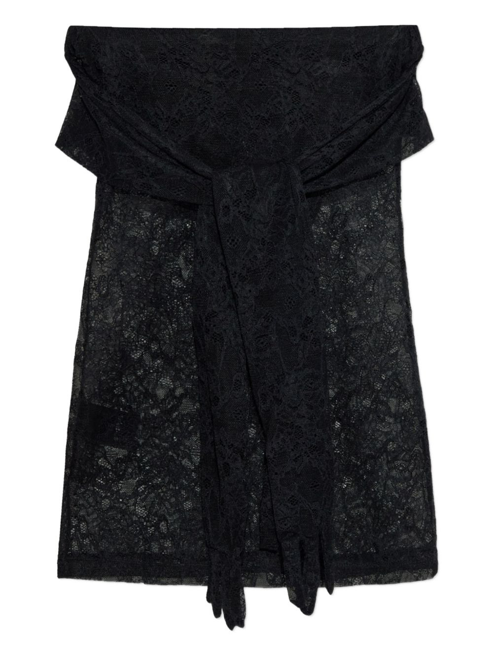 lace-bow top Highlights - Black - Lace fabric - Strapless neckline - Bow detail - Fitted bodice - Semi-sheer finish Made in Italy Composition Polyamide 90%, Spandex/Elastane 10% Washing instructions Read Manufacturer Guidelines