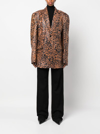 leopard-print leather blazer Highlights - Animalier brown - Calf leather - All-over leopard print - Shoulder pads - Notched lapels - Front button fastening - Long sleeves - Buttoned cuffs - Two side flap pockets - Straight hem Made in Italy Composition Calf Leather 100% SIZE & FIT Model measurements Height 5 ft 11 in(1.8 m) Bust/Chest 31.88 in(81 cm) Hips 35.03 in(89 cm) Waist 24.01 in(61 cm) FittingInformation Designed for an oversized fit, offering additional room throughout The vented hem offers movement at the rear Firm leather offering little flexibility to maintain its durability and sturdiness This piece fits true to size – if you would prefer a closer fit, take one size down