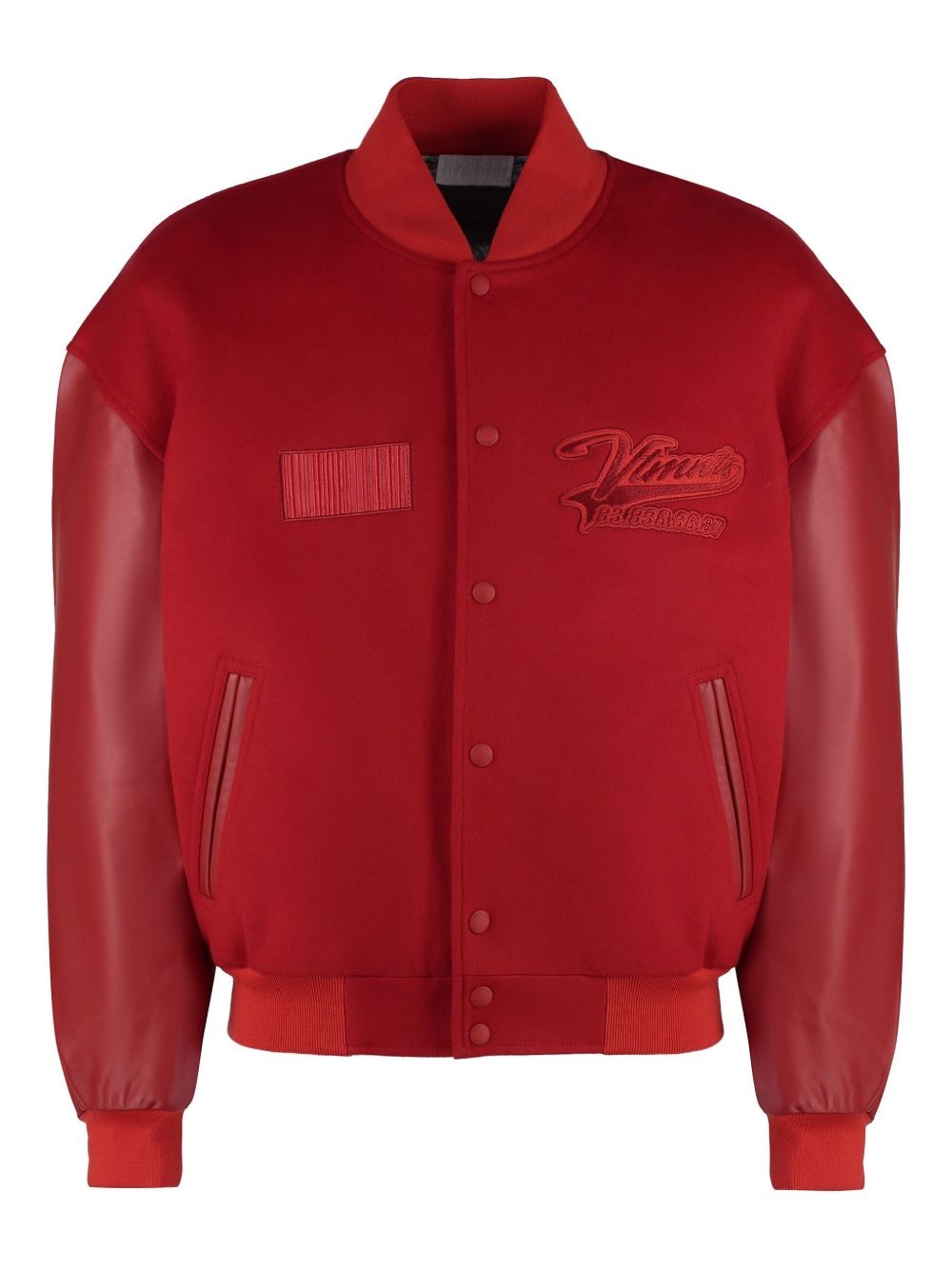 logo-embroidered bomber jacket Highlights - Blood red - Front press-stud fastening - Two side slit pockets - Panelled design - Long sleeves Made in Italy Composition Virgin Wool 100%