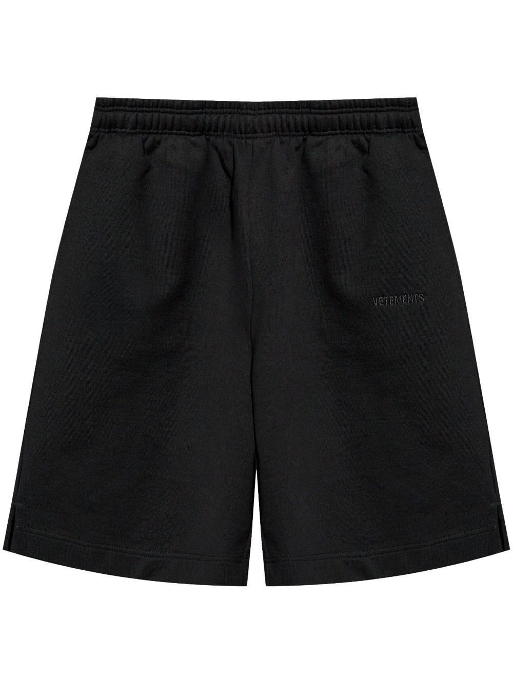 logo-embroidered track shorts Highlights - Black - Cotton - Jersey texture - Elasticated waistband - Mid-rise - Two side slit pockets - Embroidered logo at the leg - Knee-length Imported Composition Cotton 100%
