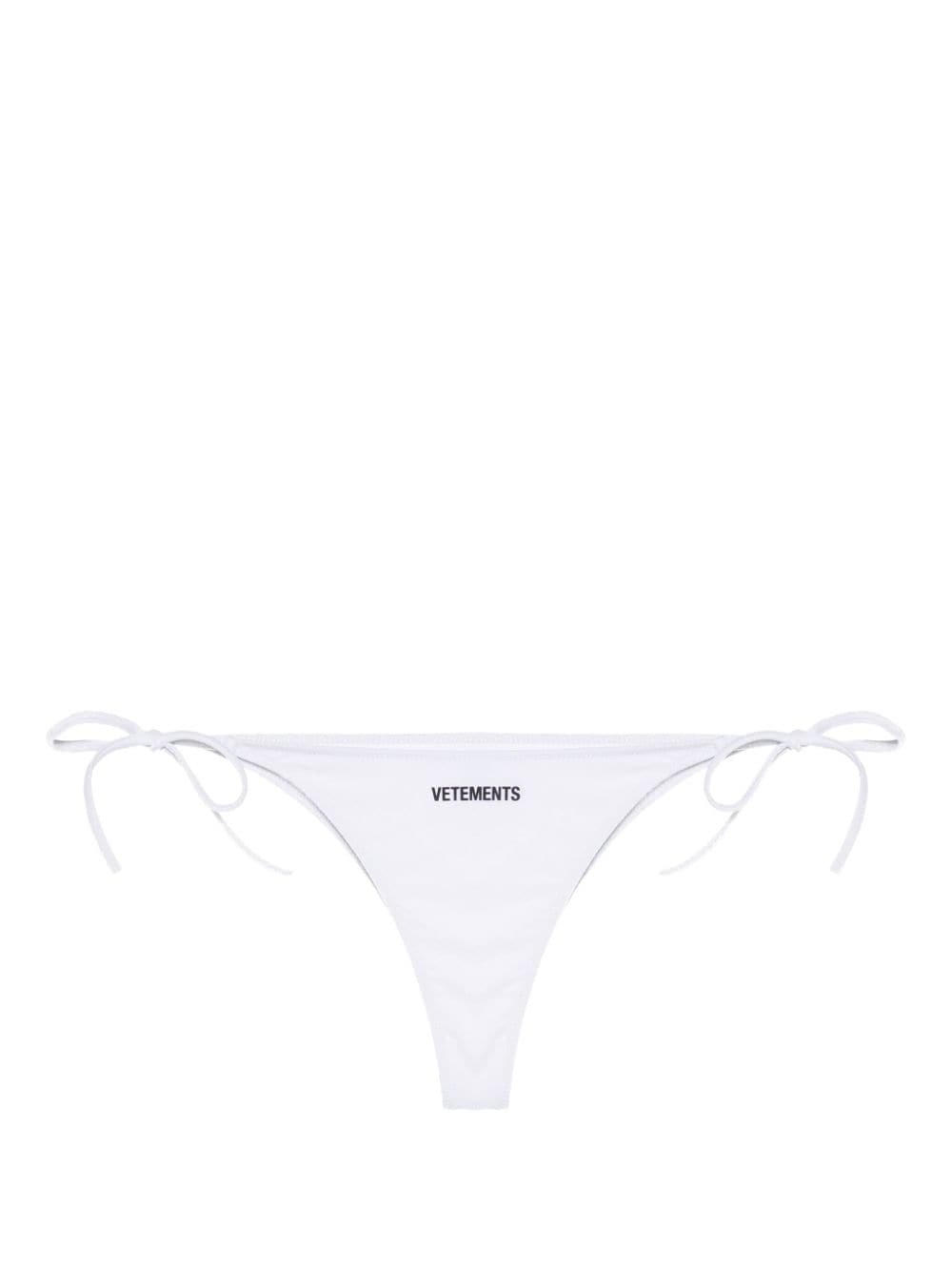 logo-print bikini bottom Highlights - White - Stretch-design - Logo print to the front - Side lace-up fastening - Be mindful to try on swimwear over your own garments. Made in Italy Composition Polyamide 78%, Spandex/Elastane 22%