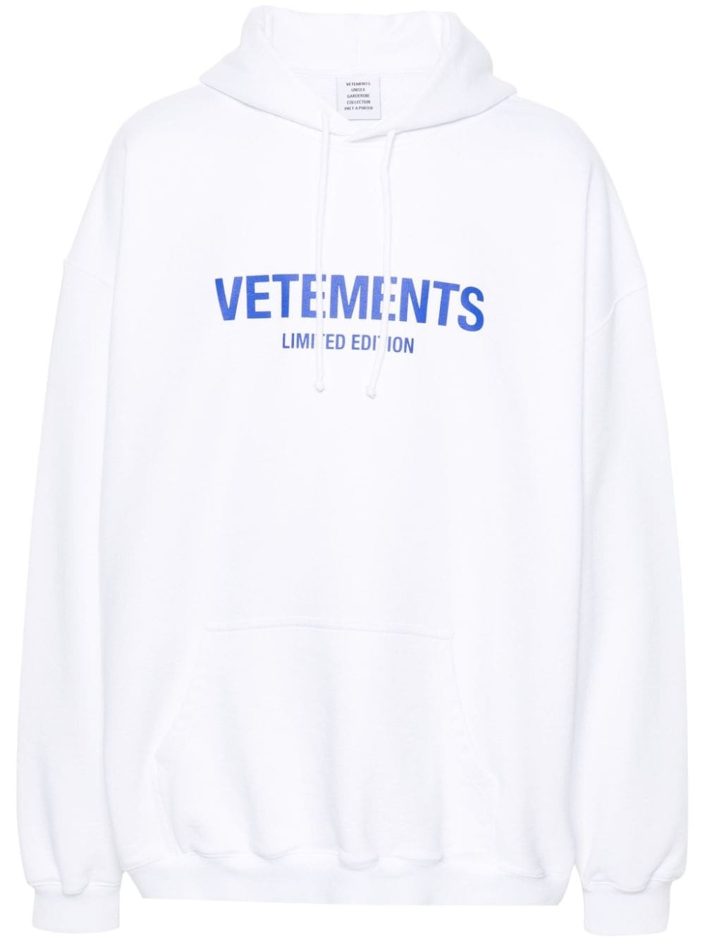 logo-print cotton-blend hoodie Highlights - White/blue - Cotton blend - Jersey texture - Logo print to the front - Drawstring hood - Drop shoulder - Long sleeves - Ribbed cuffs and hem - Front pouch pocket - Straight hem - French terry lining - When buying this unisex item, keep in mind that it is graded in standard men's sizing. Imported Composition Cotton 80%, Polyester 20% SIZE & FIT Model measurements Height 5 ft 10 in(1.77 m) Bust/Chest 32.28 in(82 cm) Hips 35.03 in(89 cm) Waist 25.19 in(64 cm) FittingInformation This piece is unisex – if you usually select men's sizing expect a loose fit throughout; if you usually select women's sizes, expect an oversized fit Made from a midweight non-stretch fabric, this piece offers minimal elasticity when worn