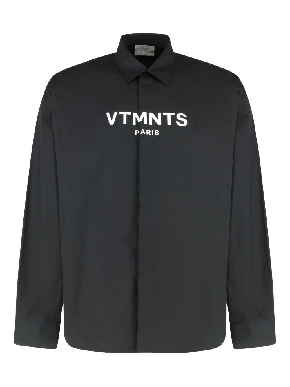 logo-print cotton shirt Highlights - Black - Long sleeves - Button cuffs - Contrasting logo print - Cotton - Concealed fastening Imported Composition Cotton 100% Washing instructions Read Manufacturer Guidelines