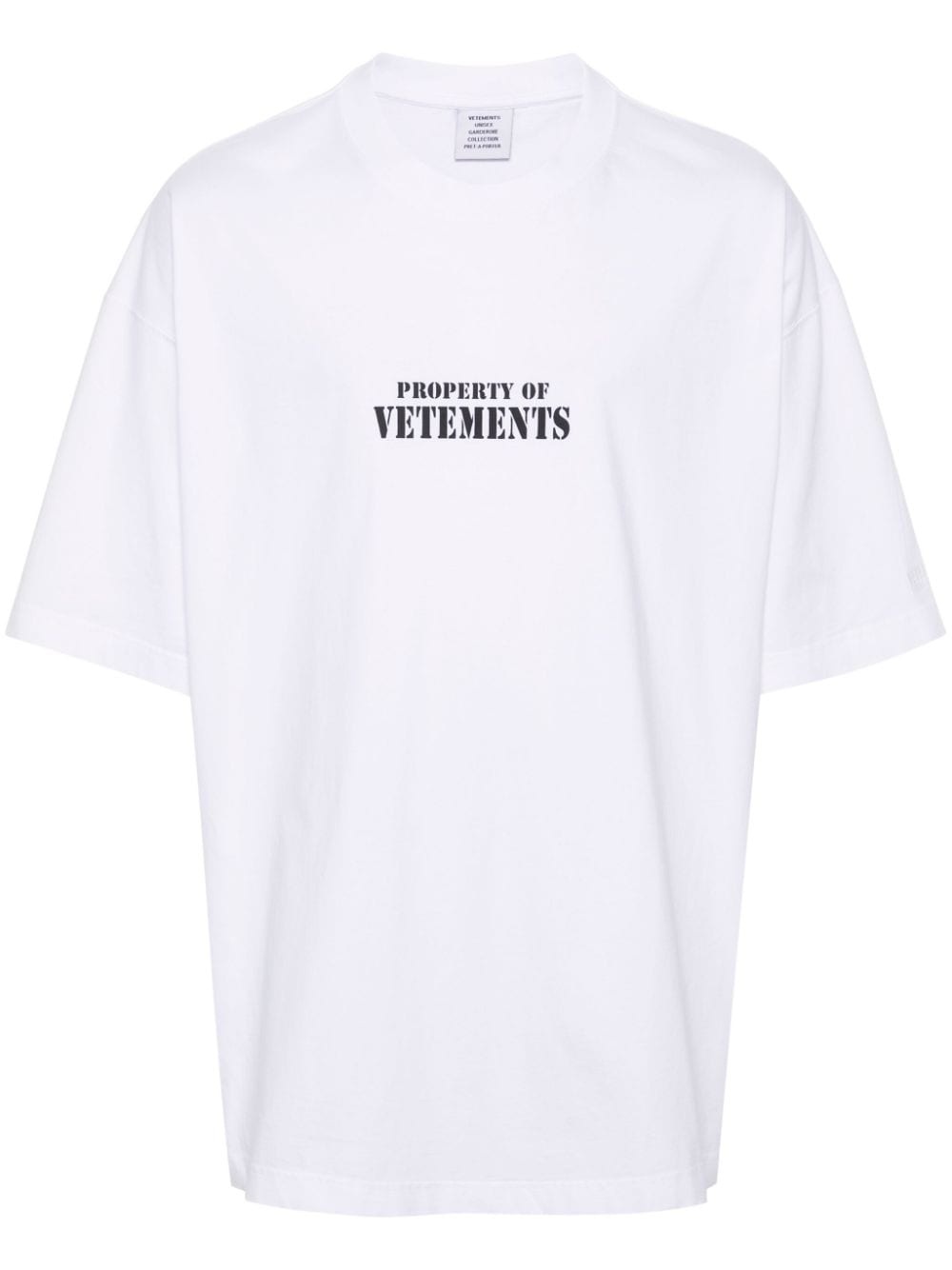 logo-print cotton T-shirt Vetements' cotton T-shirt is cut to a relaxed oversized silhouette and is printed with logo lettering on the front. Highlights - White - Stretch-cotton - Jersey texture - Crew neck - Drop shoulder - Short sleeves - Logo print at the chest - Straight hem - When buying this unisex item, keep in mind that it is graded in standard men's sizing. Imported Composition Outer: Cotton 97%, Elastane 3% Cotton 100% SIZE & FIT Model measurements Height 5 ft 11 in(1.8 m) Bust/Chest 32.67 in(83 cm) Hips 36.22 in(92 cm) Waist 24.4 in(62 cm) FittingInformation This unisex piece is designed for an oversized fit whether you usually select women's or men's sizes Made from a midweight non-stretch fabric, this piece offers minimal elasticity when worn