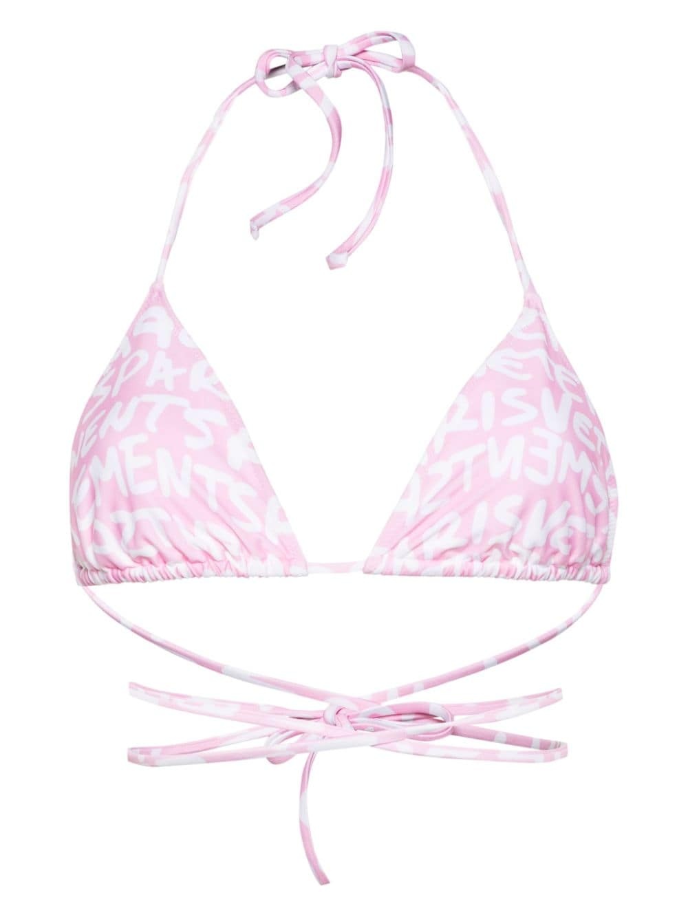 logo-print halterneck bikini top Highlights - Pink/white - Stretch-design - All-over logo print - Triangle cup - Halterneck tie fastening - Rear tie fastening - Square open back - Elasticated underband - Be mindful to try on swimwear over your own garments. Made in Italy Composition Outer: Polyamide 78%, Elastane 22% Lining: Polyamide 82%, Elastane 18% Washing instructions Hand Wash