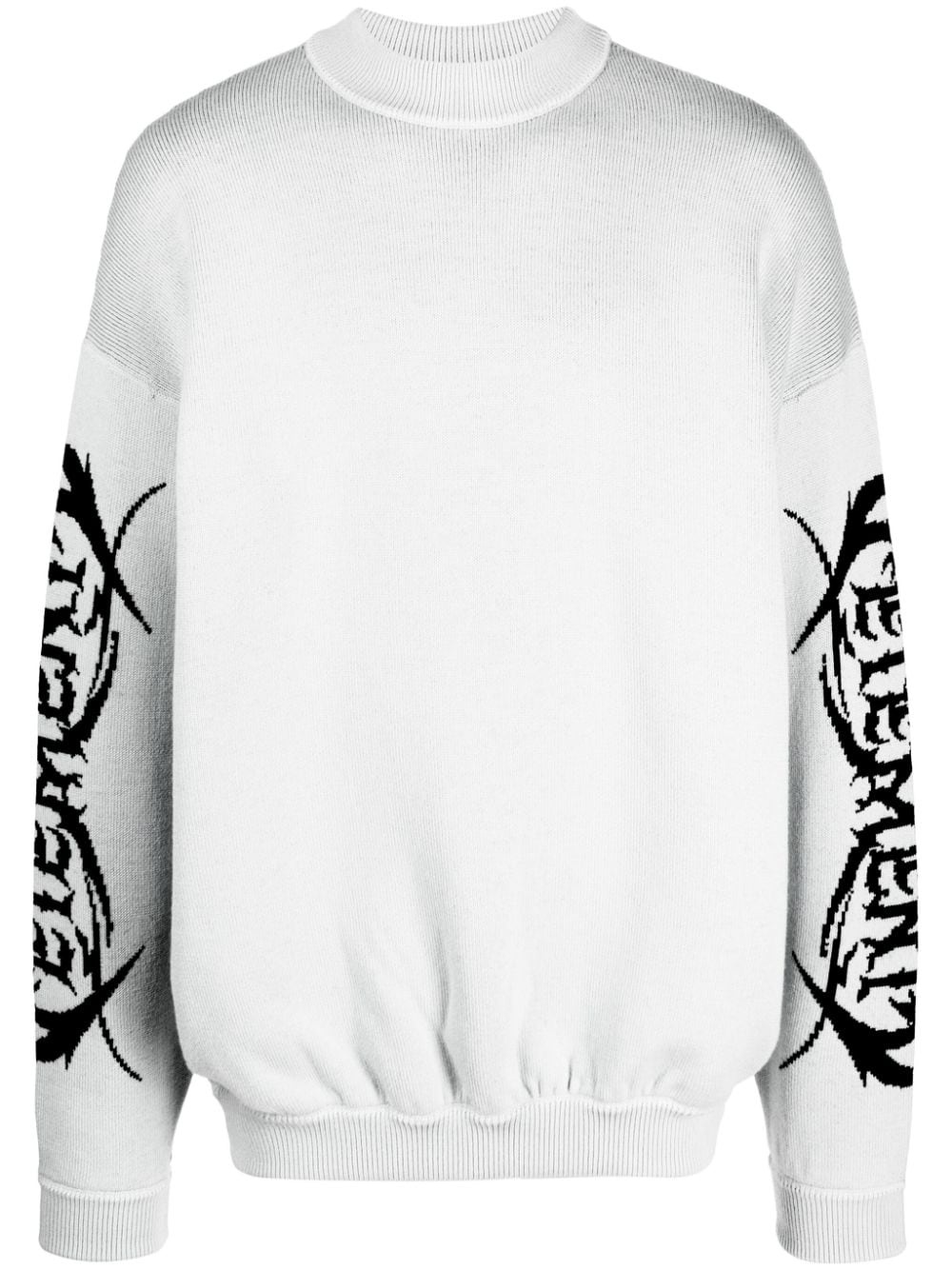 logo-print merino wool jumper Highlights - Light grey - Merino wool - Ribbed knit - Logo print at the sleeve - Crew neck - Long sleeves - Straight hem - When buying this unisex item, keep in mind that it is graded in standard men's sizing. Made in Italy Composition Merino 100% SIZE & FIT Model measurements Height 5 ft 11 in(1.8 m) Bust/Chest 31.49 in(80 cm) Hips 36.61 in(93 cm) Waist 24.4 in(62 cm) FittingInformation This unisex piece is designed for an oversized fit whether you usually select women's or men's sizes Washing instructions Hand Wash