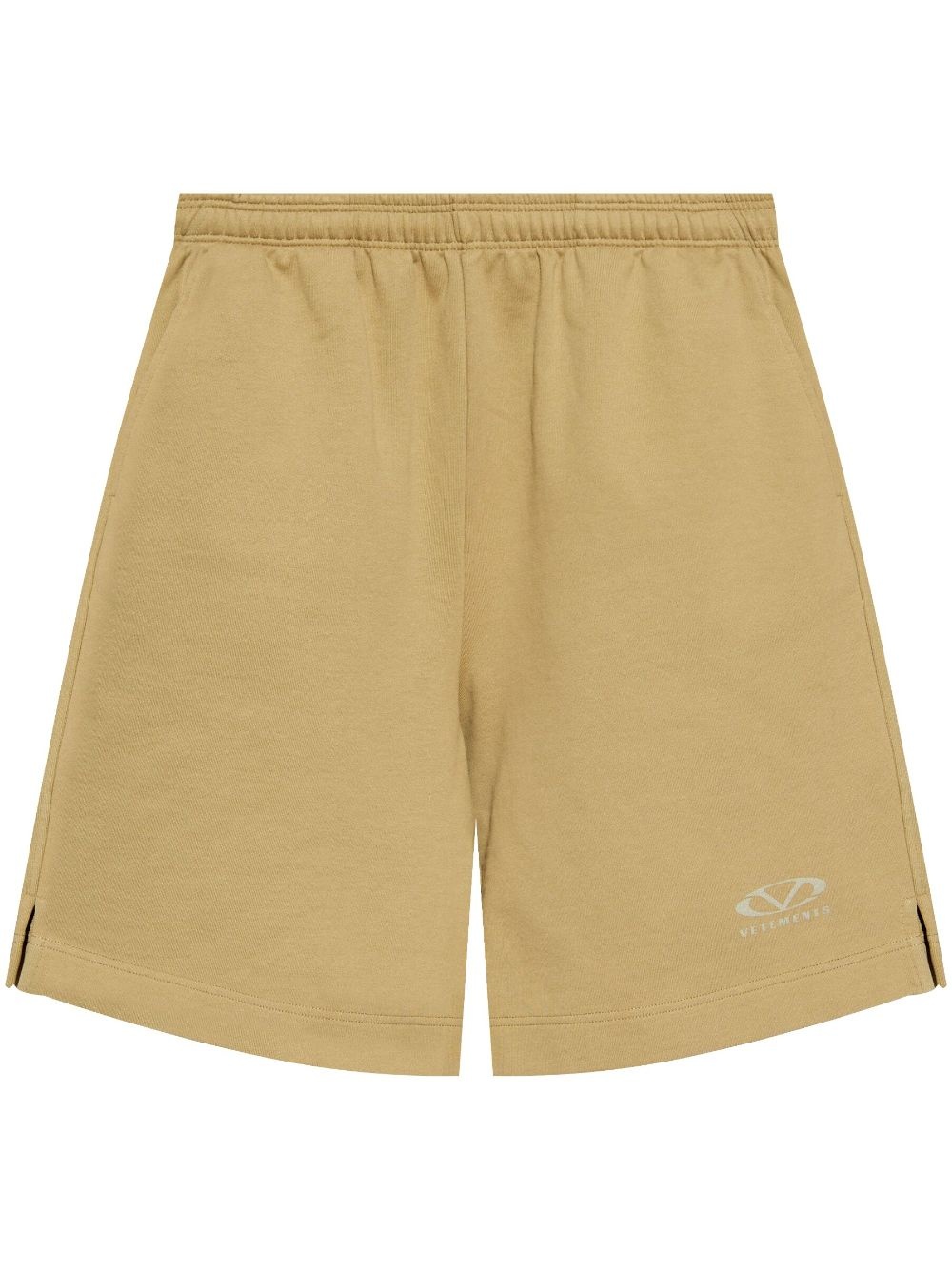 logo-print shorts Highlights - Taupe brown - Cotton - Elasticated waistband - Logo print to the side - Slip pockets to the sides - Rear patch pocket - Side slits Imported Composition Cotton 100%
