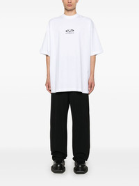logo-print T-shirt Highlights - White - Cotton blend - Jersey texture - Ribbed crew neck - Short sleeves - Logo print to the front - Straight hem - When buying this unisex item, keep in mind that it is graded in standard men's sizing. Imported Composition Cotton 97%, Elastane 3% SIZE & FIT Model measurements Height 5 ft 9 in(1.75 m) Bust/Chest 31.88 in(81 cm) Hips 34.64 in(88 cm) Waist 24.01 in(61 cm) FittingInformation This unisex piece is designed for an oversized fit whether you usually select women's or men's sizes Made from a midweight non-stretch fabric, this piece offers minimal elasticity when worn