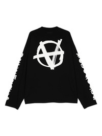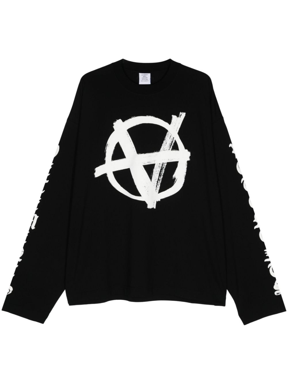 logo-print T-shirt Highlights - Black/white - Cotton - Jersey texture - All-over logo print - Crew neck - Drop shoulder - Long sleeves - Unlined - Straight hem - When buying this unisex item, keep in mind that it is graded in standard men's sizing. Imported Composition Cotton 100% SIZE & FIT Measurement CHEST 55.11 in(140 cm) SLEEVE LENGTH 29.92 in(76 cm) LENGTH 24.01 in(61 cm) Shoulder Width 25.98 in(66 cm)