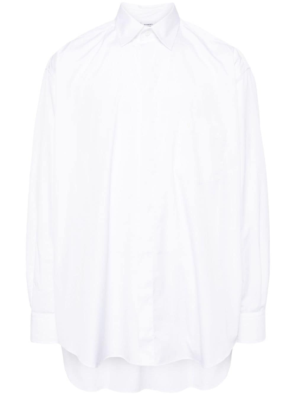logo-tag cotton shirt Vetements' cotton shirt is cut to an oversized silhouette and is detailed with a logo tag on the back. Highlights - White - Cotton - Logo tag - Classic collar - Front button fastening - Long sleeves - Buttoned cuffs - When buying this unisex item, keep in mind that it is graded in standard men's sizing. Made in Italy Composition Cotton 100% SIZE & FIT Model measurements Height 6 ft 2 in(1.87 m) Bust/Chest 33.07 in(84 cm) Hips 35.43 in(90 cm) Waist 26.77 in(68 cm) FittingInformation This unisex piece is designed for a loose fit whether you usually select women's or men's sizes Made from a midweight non-stretch fabric, this piece offers minimal elasticity when worn