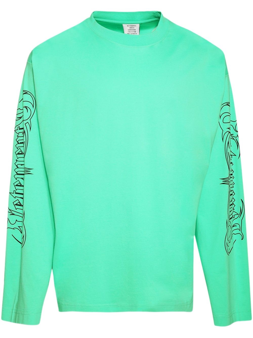 Metal-print T-shirt Highlights - Green - Crew neck - Long sleeves - Straight hem Imported Composition Cotton 100%