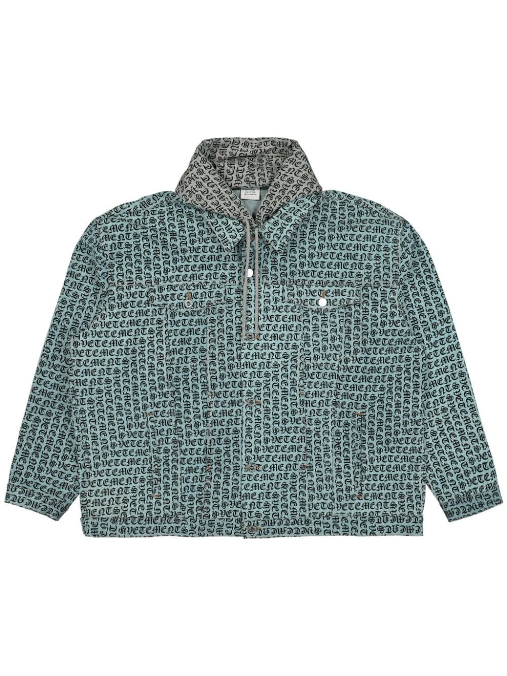 monogram-print jacket Highlights - Light blue/ash grey - Cotton - Monogram print - Front button fastening - Drawstring hood - Two chest flap pockets - Long sleeves - Straight hem - When buying this unisex item, keep in mind that it is graded in standard men's sizing. Imported Composition Cotton 100%